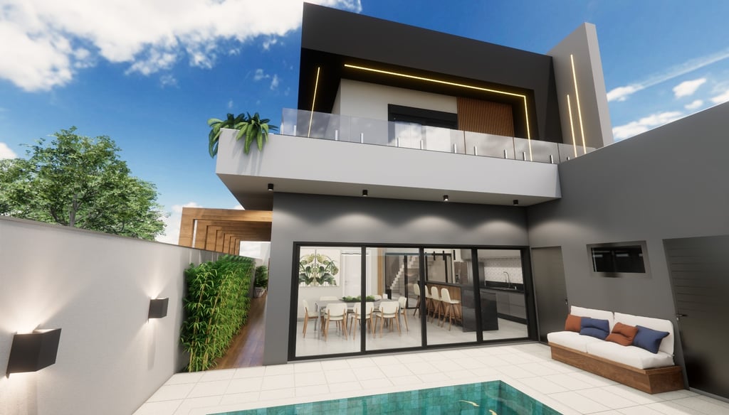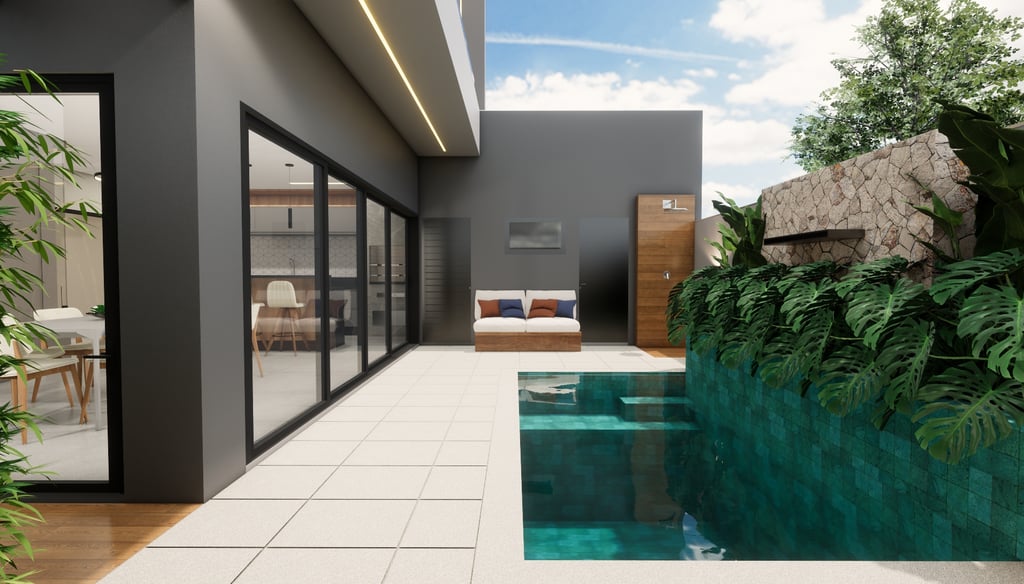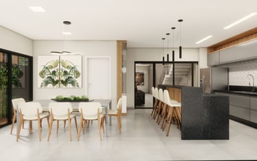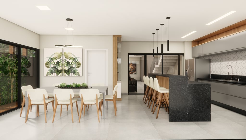 A Residência Oliveira é um projeto que alia estética e funcionalidade, com um layout fluido e ambientes pensados para proporcionar bem-estar e qualidade de vida.