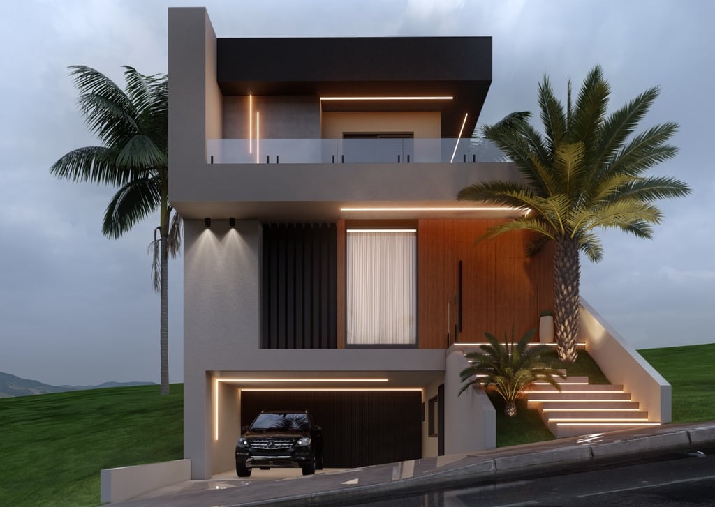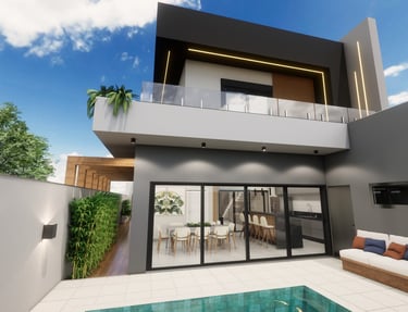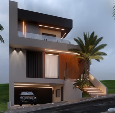 Localizada no Condomínio Reserva dos Ipês, em Boituva - SP, a Residência Oliveira é um sobrado contemporâneo que une design sofisticado e funcionalidade, garantindo espaços bem distribuídos para o dia a dia. Com uma área construída de 246,28 m² em um terreno de 219,39 m², o projeto foi desenvolvido para otimizar cada ambiente, proporcionando conforto e integração.